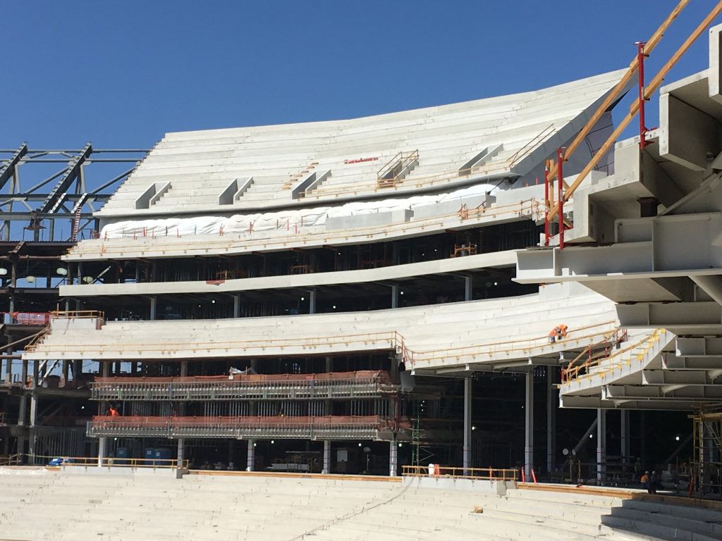 This 298-acre site accommodates 13,500 cubic yards of concrete, 2,375 tub and riser pieces, 368 vomitory walls and other wall-type pieces, as well as 400 ADA, camera platforms (floor slabs). Seating over 70,000 people, the stadium is equipped with lightweight precast concrete products for easy installation. Furthermore, the site includes a YouTube Theater with additional precast stadia pieces.