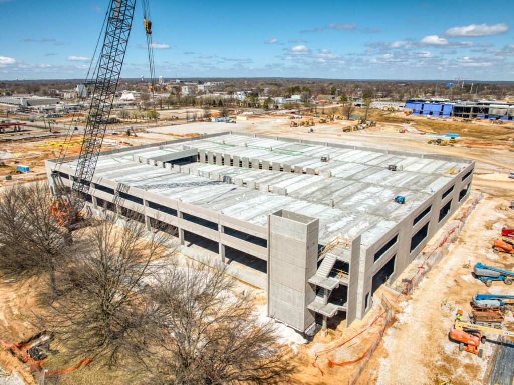 The precast benefits provided by Coreslab Structures (OKLA) Inc for the New Walmart Headquarters campus parking decks project are numerous. Precast concrete offers a host of advantages that are essential for a project of this scale and complexity: durability, sustainability, resiliency and efficiency. Precast concrete is a highly durable material, with a long service life that can withstand the elements, making it an ideal choice for this multi-use parking deck. Precast concrete also offers environmental benefits, with a low carbon footprint and recyclable materials.