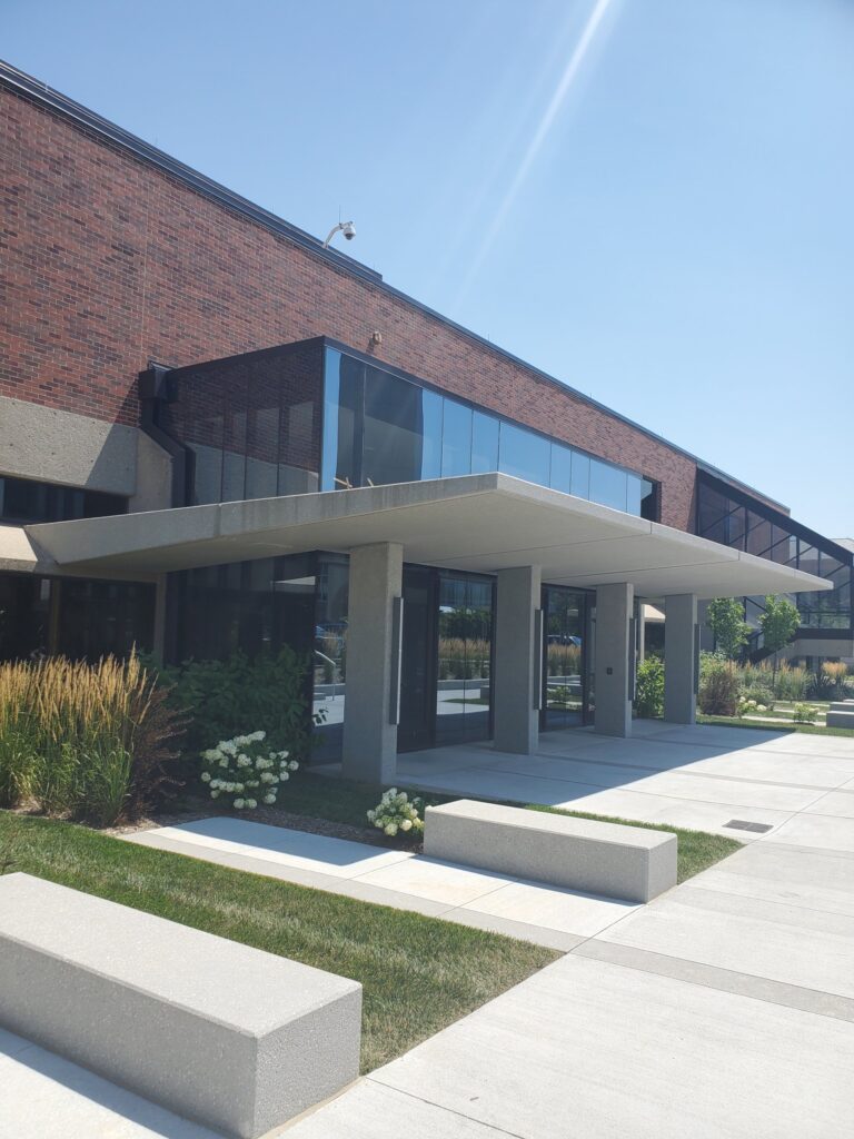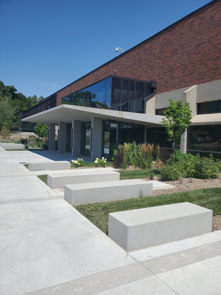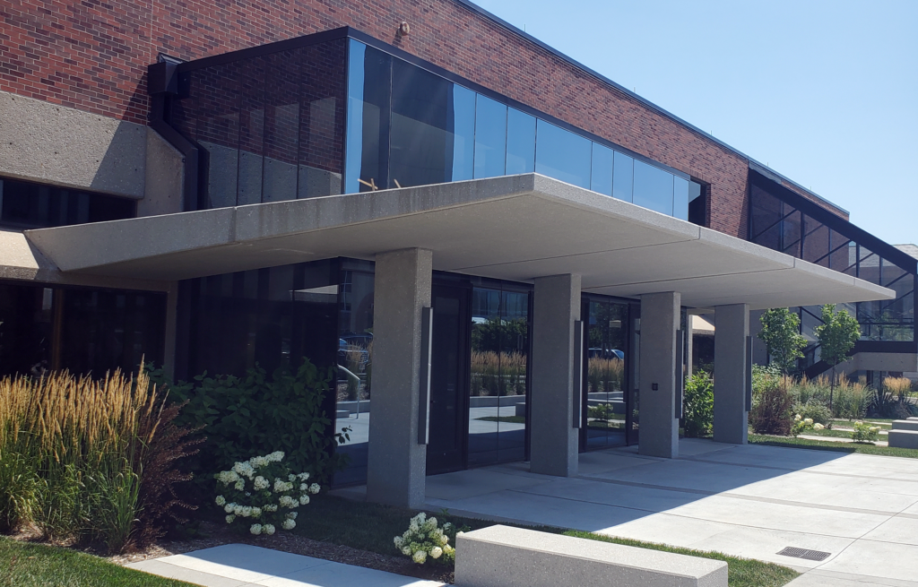 The precast columns and canopy pieces were able to be sandblasted to match the existing cast-in-place grey concrete exterior finish, providing a seamless integration with the building. In addition, the precast pieces were designed to ensure the canopy was safely and securely in place with special structural considerations taken into account.